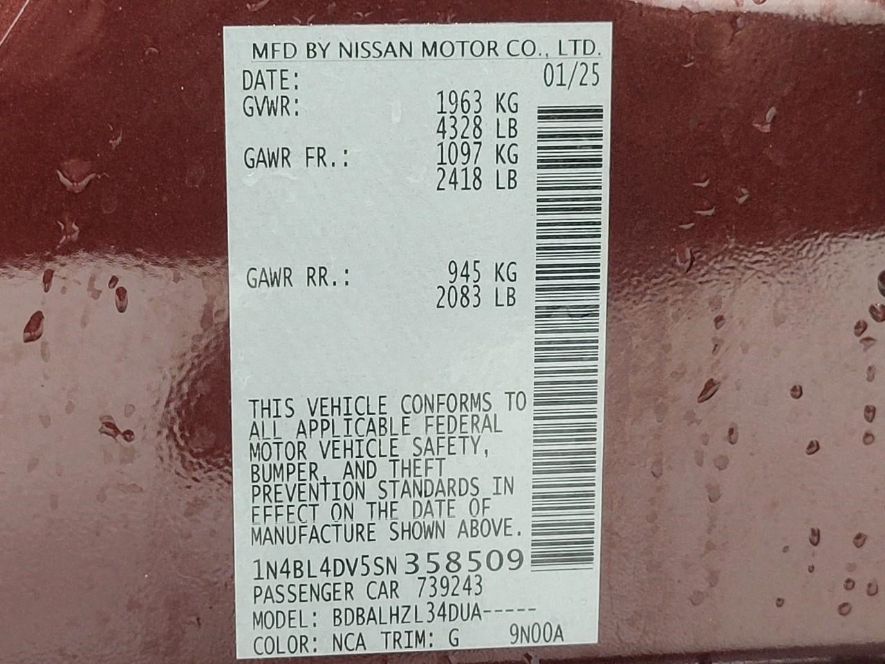 - Vehicle Name: Nissan Altima